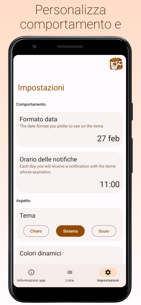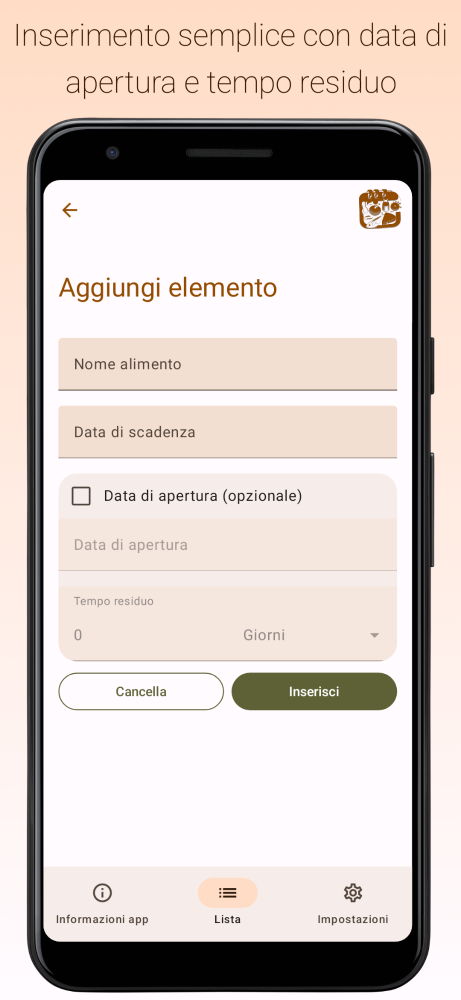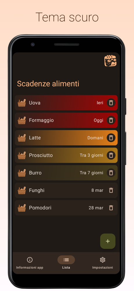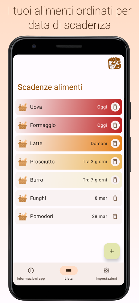Prova le funzioni dell'app sul tuo dispositivo Android. Scarica subito l'app e inizia a monitorare le date di scadenza dei tuoi alimenti!